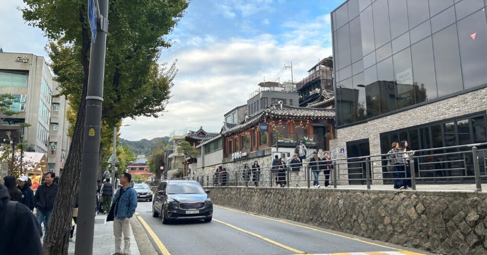 まず絶対に押さえておきたいのは、観光スポットとして写真によく登場する「北村韓屋村」のメインストリート(北村八景などがある場所)は、丘の上にあり、現在も住民の方が静かに生活している場所だということです。