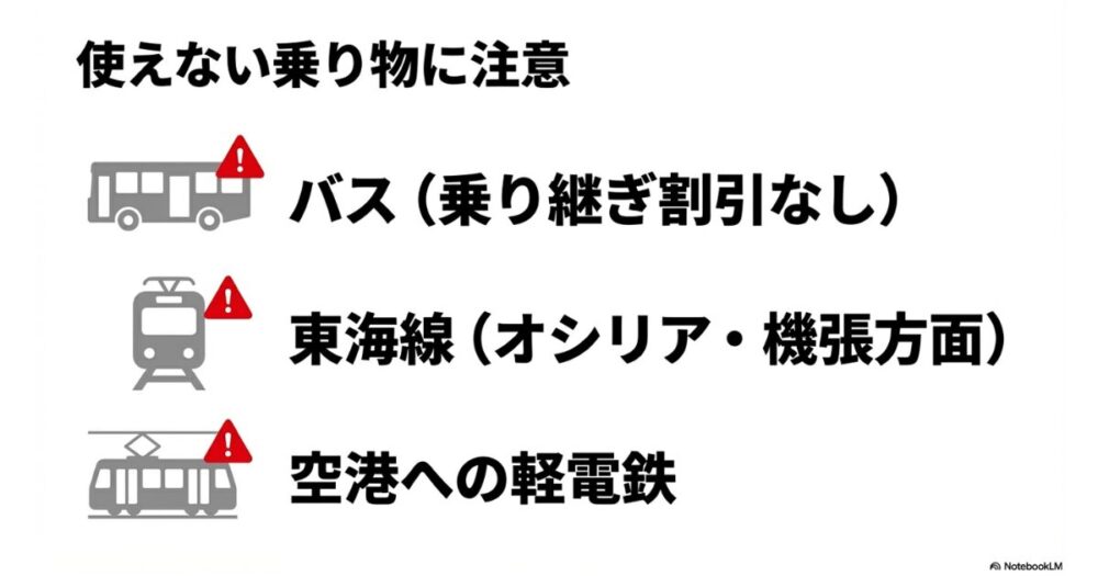 利用できない路線や、システム上の弱点も存在します。ここを理解していないと、現地で思わぬ出費やトラブルに見舞われる可能性があります。