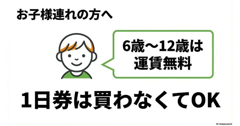 そのため、子どものために1日券を買うより、交通カード等での利用条件(適用対象・利用方法)を確認する方がお得なケースが多いです。