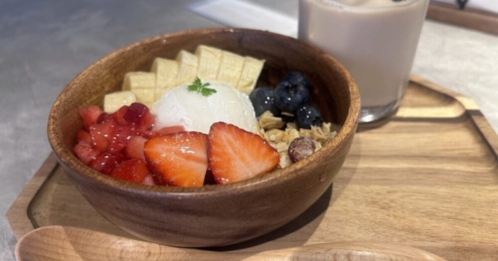 ヨーグルトの硬さ(水切りの程度)を好みに合わせて選べるだけでなく、新鮮な季節のフルーツ、自家製グラノーラ、そして高級なコムハニー(巣蜜)などを自由にトッピングできるんです。