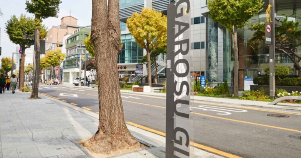 韓国語で「カロ(街路)」+「ス(樹)」+「キル(通り)」、つまり「街路樹通り」という意味を持っています。