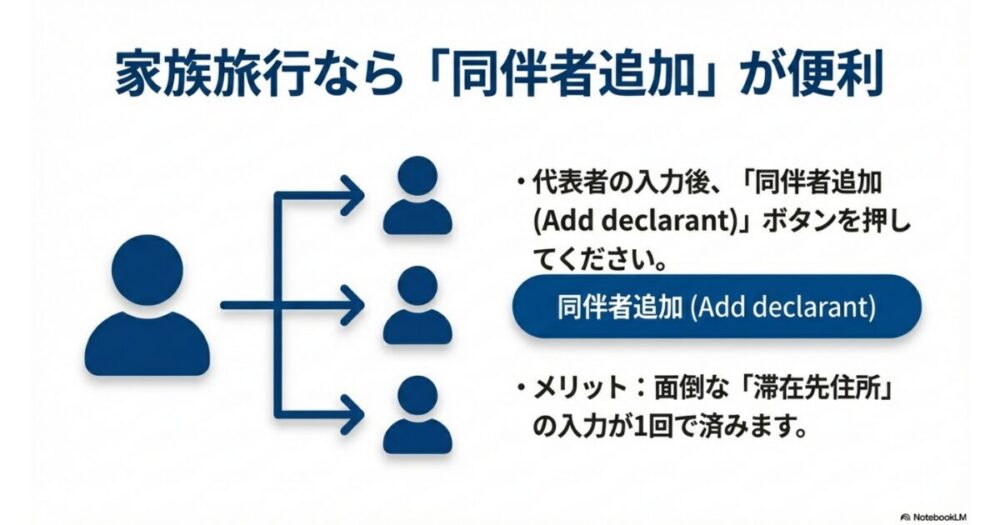 e-Arrival Cardには「同伴者追加(Add declarant)」という大変便利な機能があります。