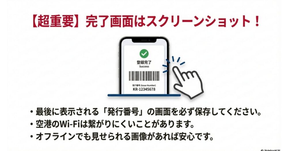 ここで一番大切なのは、完了画面を必ず「スクリーンショット」で保存しておくこと、またはPDFをダウンロードしておくことです。