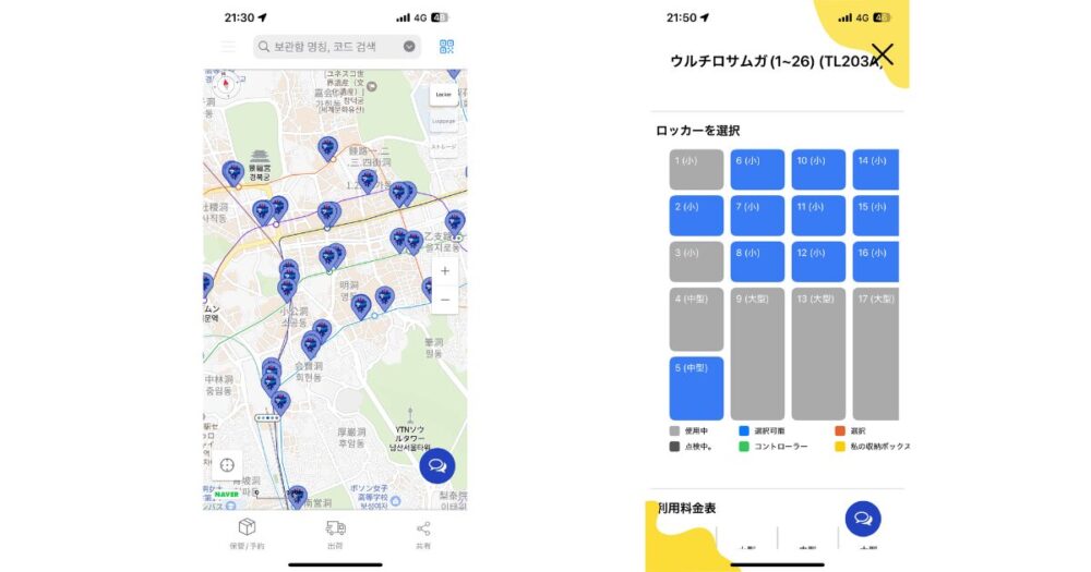 ソウル地下鉄の多くの駅に設置されており、専用のスマートフォンアプリを通じて空き状況の確認から事前予約、決済まで完結できる優れものです。