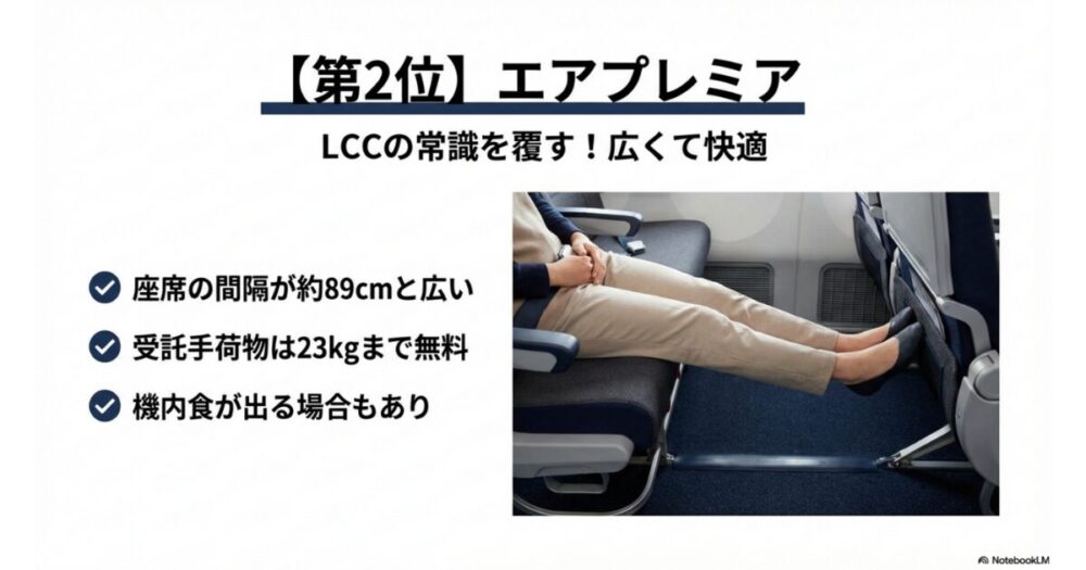「LCCは狭くて辛い」という常識を覆したのが、ハイブリッドキャリアのエアプレミアです。