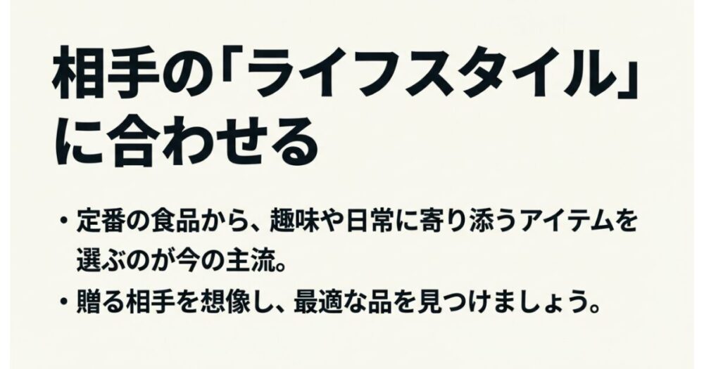 まずは贈る相手のライフスタイルや趣味を思い浮かべてみてください。