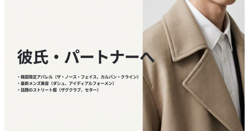 自分では買わないような高品質な韓国限定アパレルや、話題のメンズコスメセットなどが本命ギフトとして人気ですね。