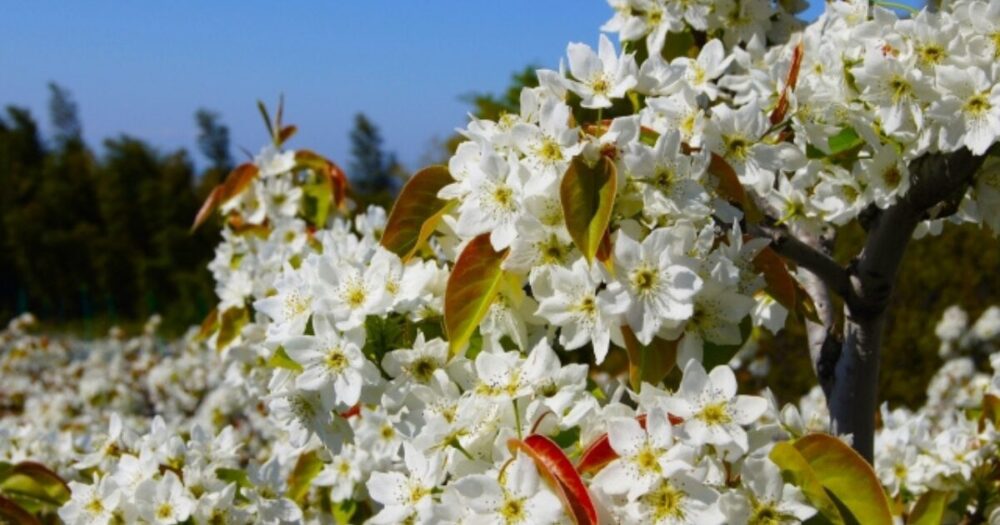 梨の花は桜の季節が終わった後、毎年4月の短い期間だけ満開を迎えます(上旬から下旬の範囲で年変動)。