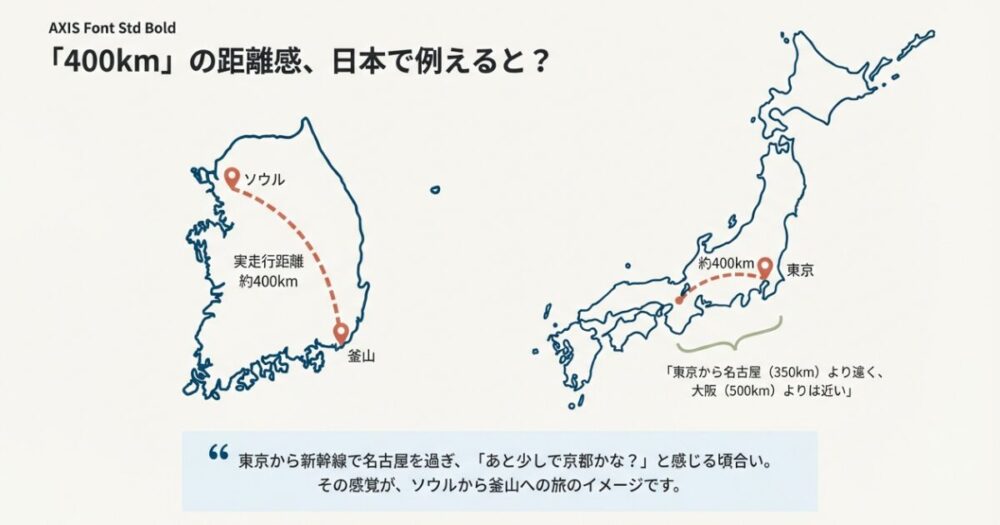 - ソウルと釜山の正確な距離と日本での距離感イメージ