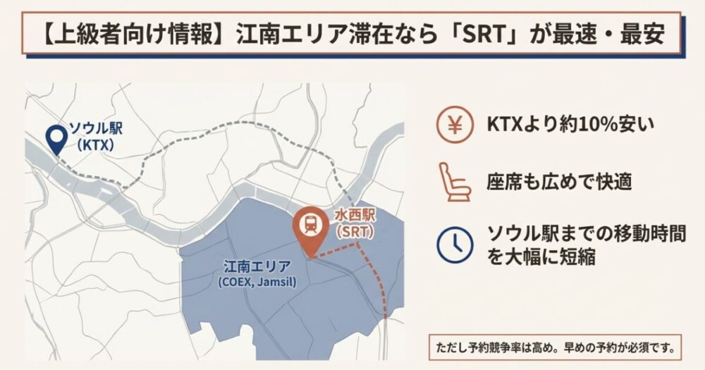 もしあなたが、江南(カンナム)エリア(コエックスや蚕室周辺)に滞在しているなら、ソウル駅まで行く必要はありません。